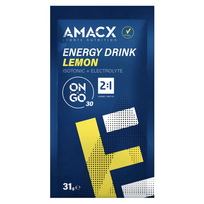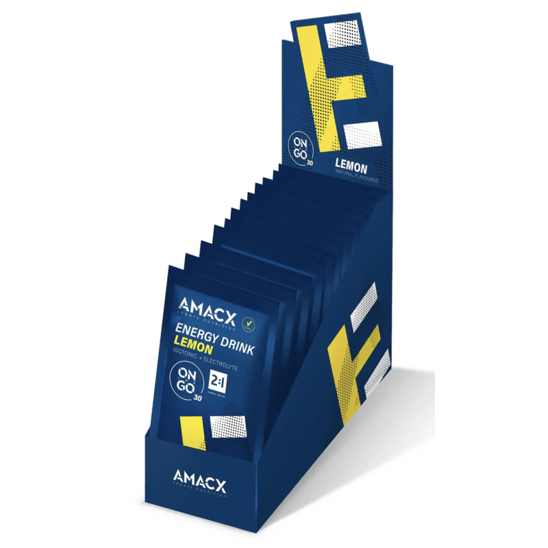 La boisson énergétique Isotonic Amacx Energy Drink On The Go aide à reconstituer les réserves de carburant pendant un long entraînement. Cette boisson contient à la fois du glucose et du fructose (rapport 2:1). Grâce à cet équilibre, votre corps peut absorber jusqu'à 90 grammes de glucides par heure. Avec les produits qui n'ont pas ce rapport, le corps peut absorber jusqu'à 60 grammes par heure. Cette boisson sportive contient du sodium et du magnésium comme additifs, qui soutiennent également directement l'équilibre hydrique. Disponible dans les variétés citron, fruits des bois et raisin.